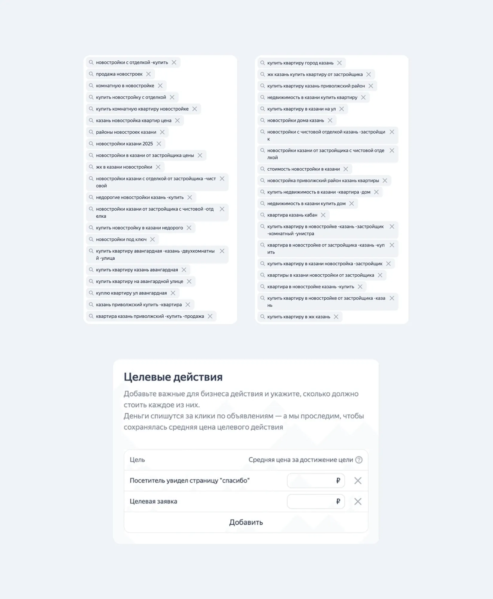 В Яндекс Директ пересобрали Мастер кампаний на ручную аудиторию с семантикой по новостройкам, комнатности и интересам к недвижимости.