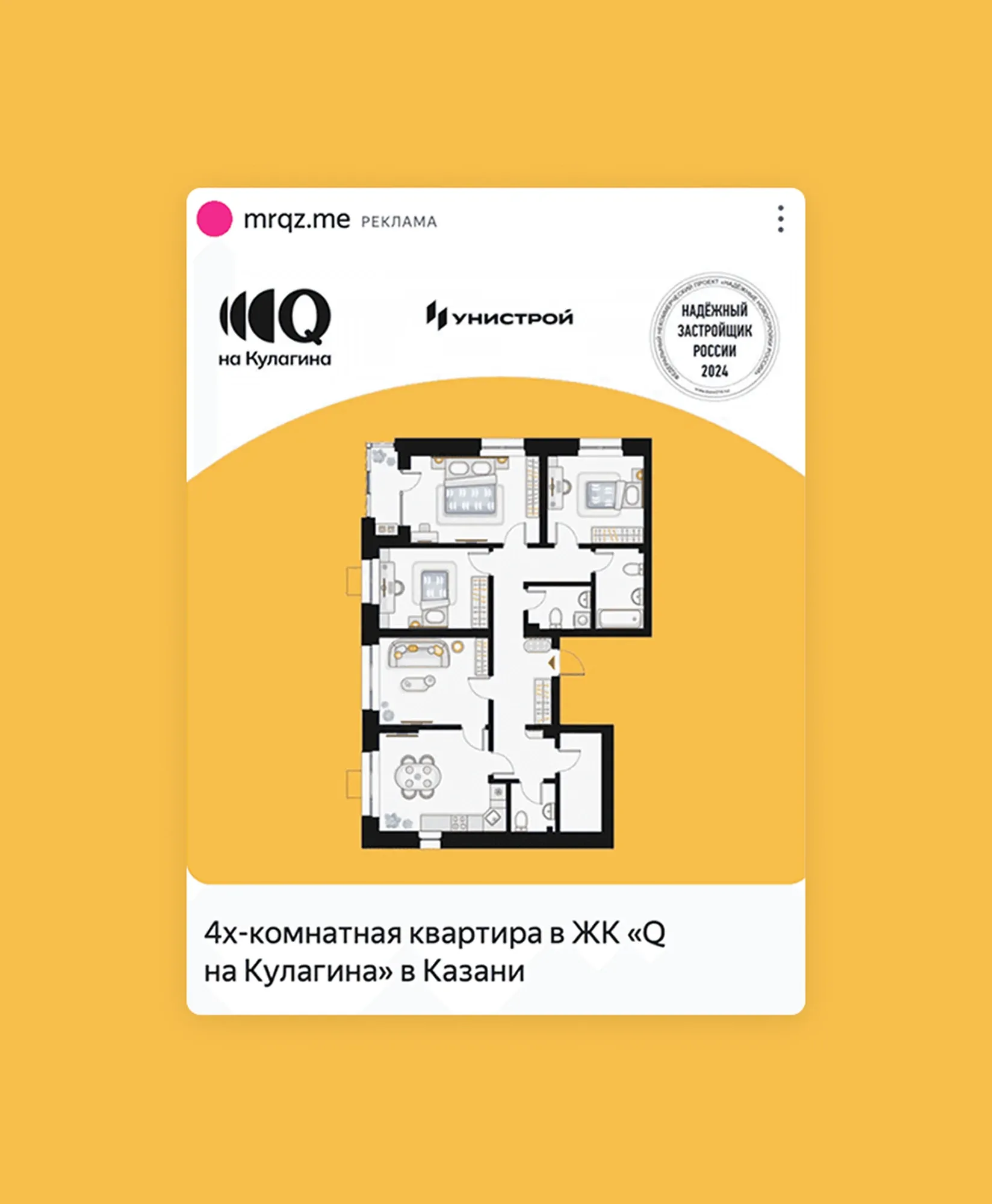 ЖК «Q на Кулагина» — жилой кластер в Казани от девелопера Унистрой. В составе квартала два дома переменной этажности 9–20 уровней, дворы-парки с сенсорными игровыми и спортивными зонами, собственный детский сад и школа.
