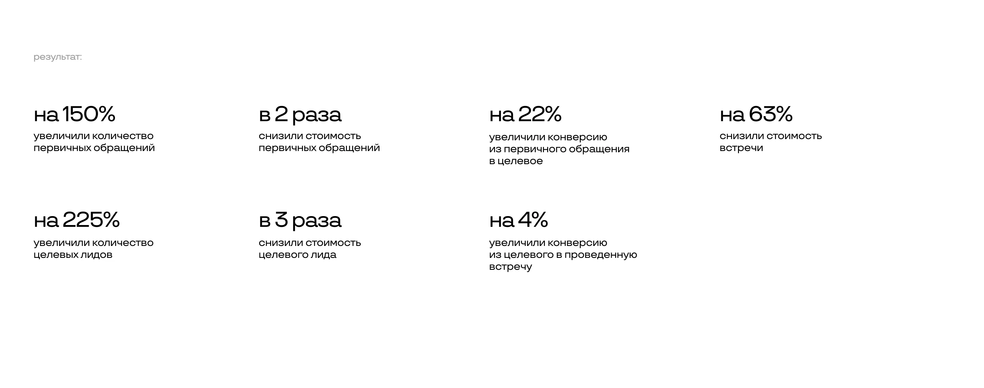 в 3 раза увеличили количество целевых лидов и снизили стоимость встречи на 63%