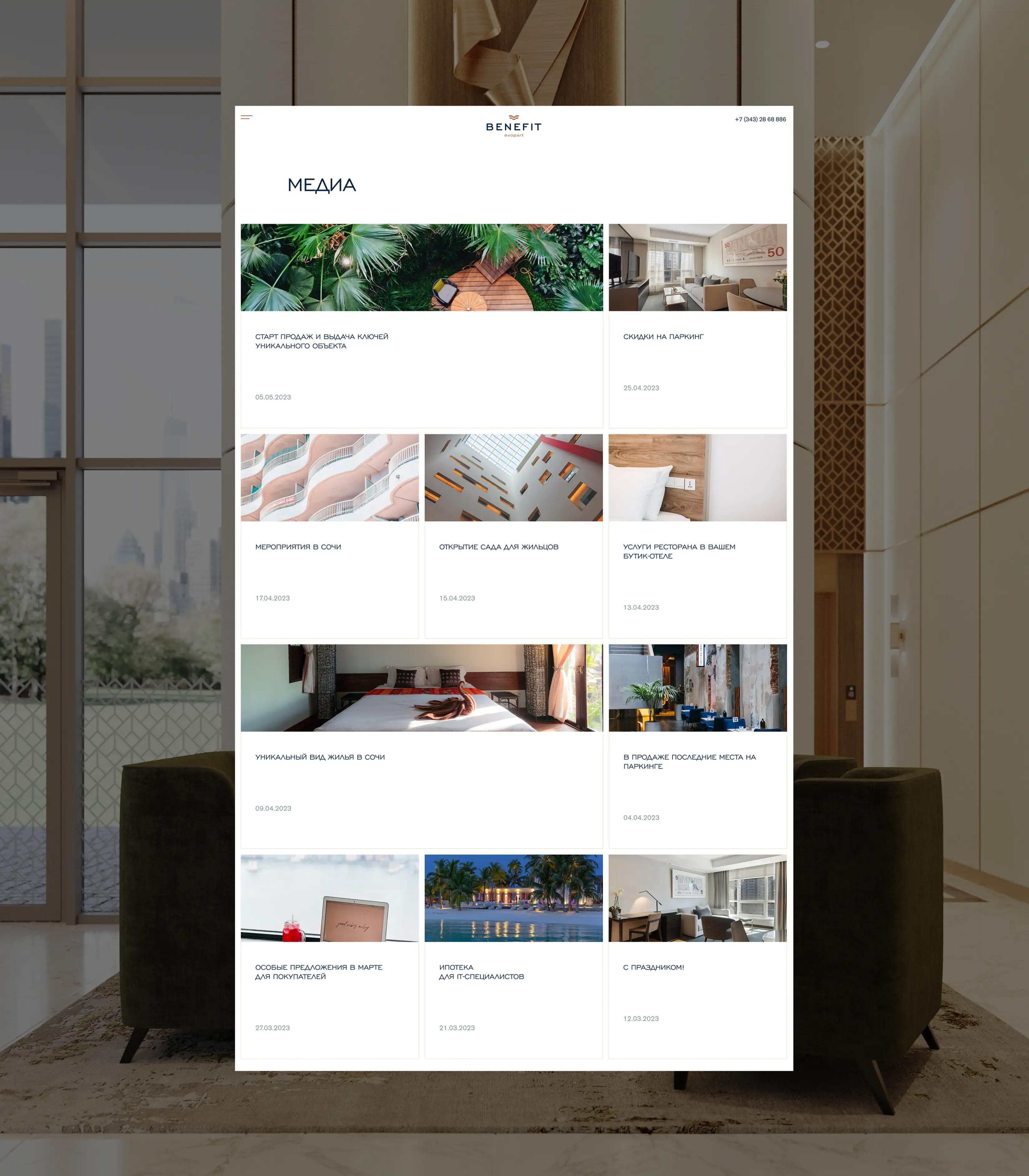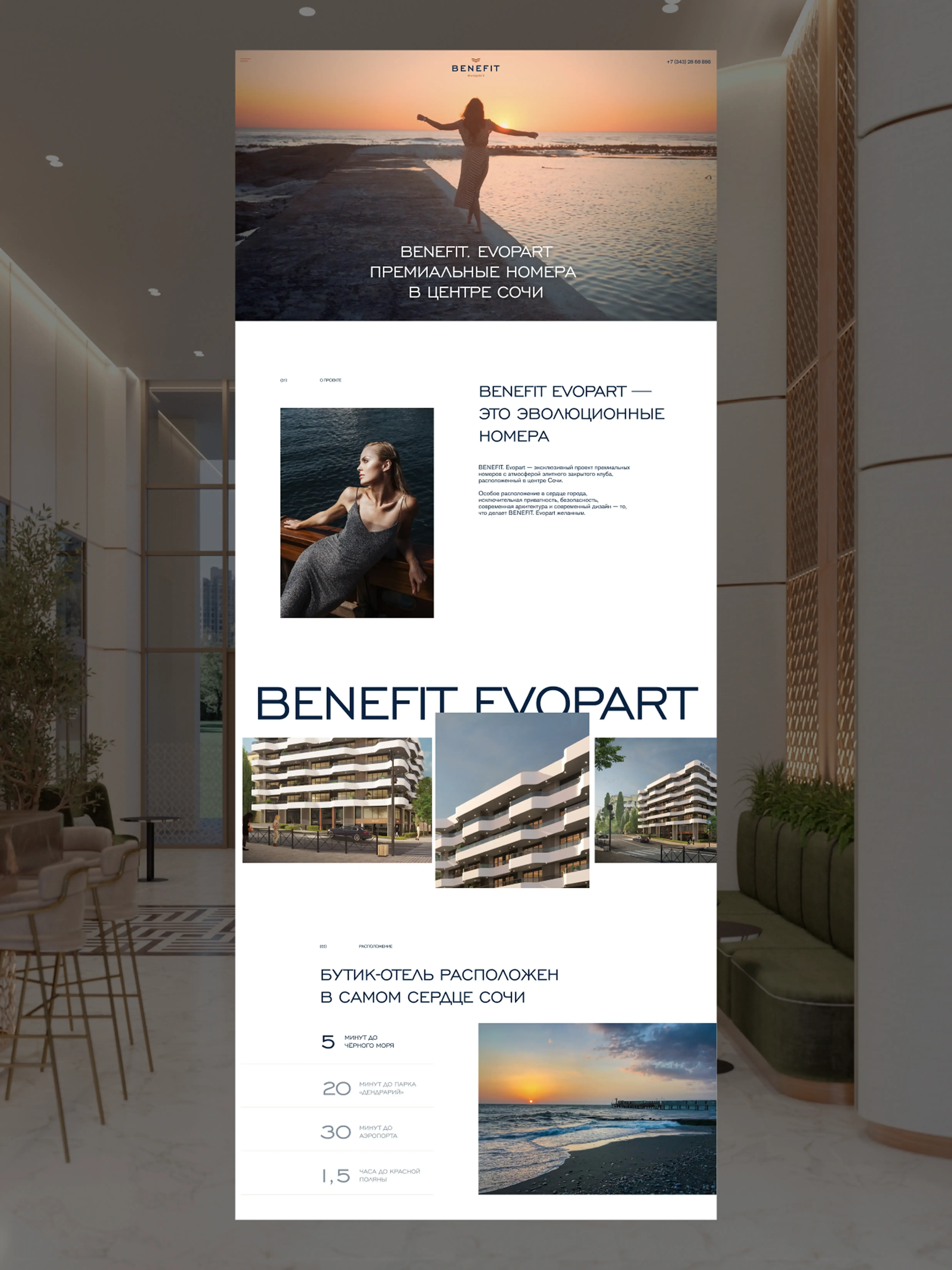Benefit Evopart. Сайт для проекта с атмосферой элитных номеров в центре Сочи
