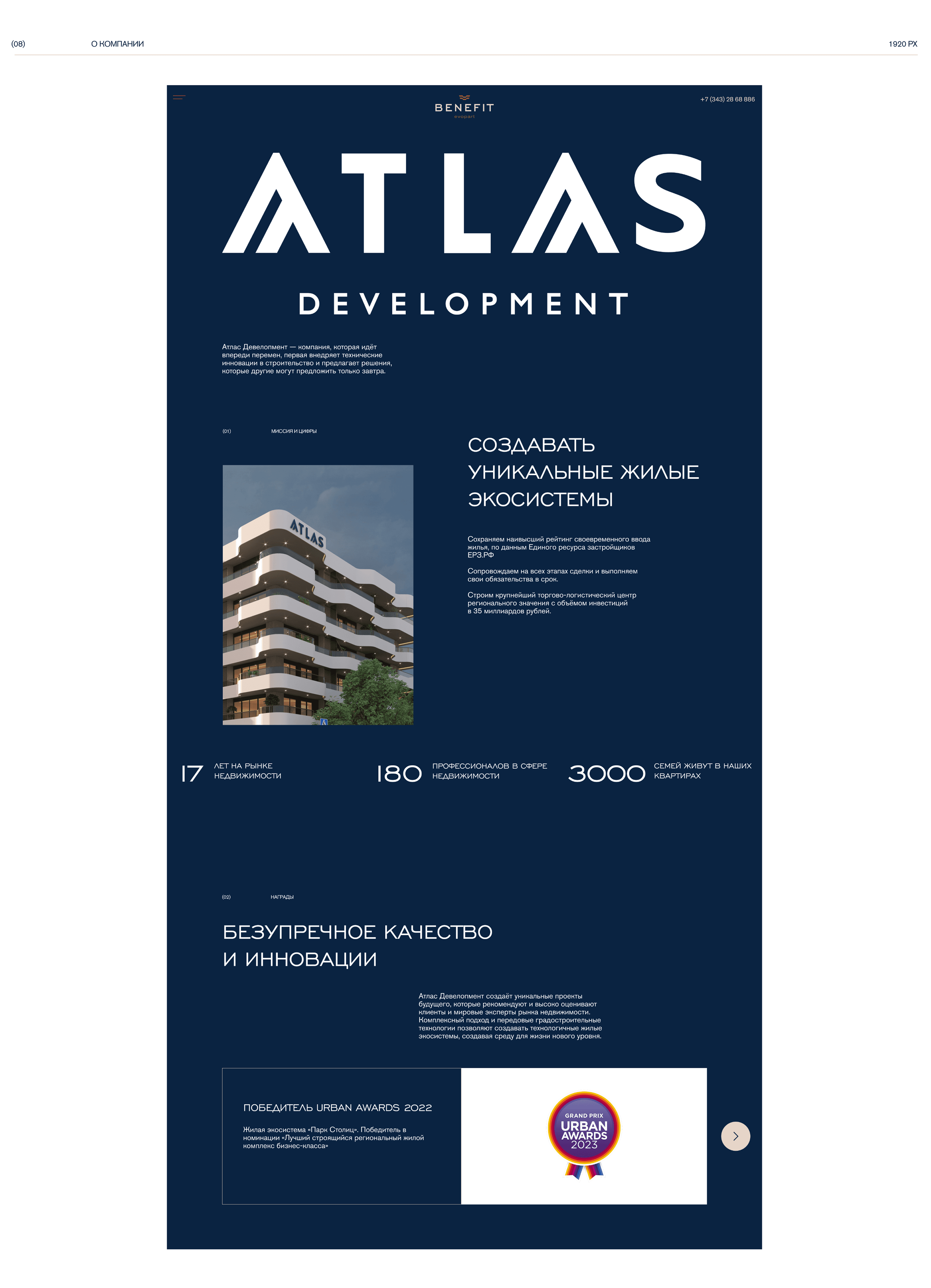 Atlas Development — амбициозная команда профессионалов из Екатеринбурга, работающая на рынке недвижимости с 2006 года. Для проекта Benefit Evopart в Сочи требовался сайт, отражающий новый уровень премиального жилья.