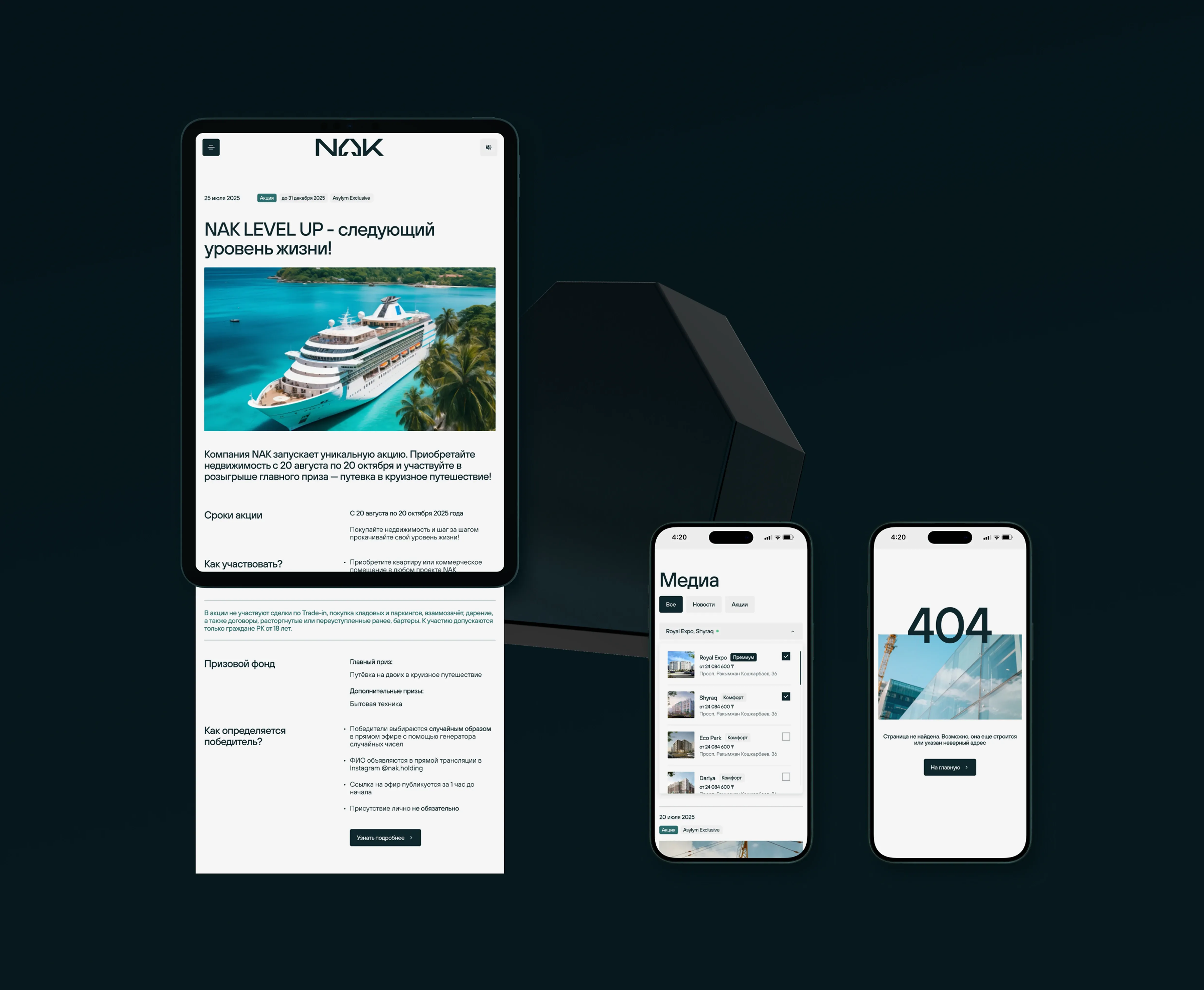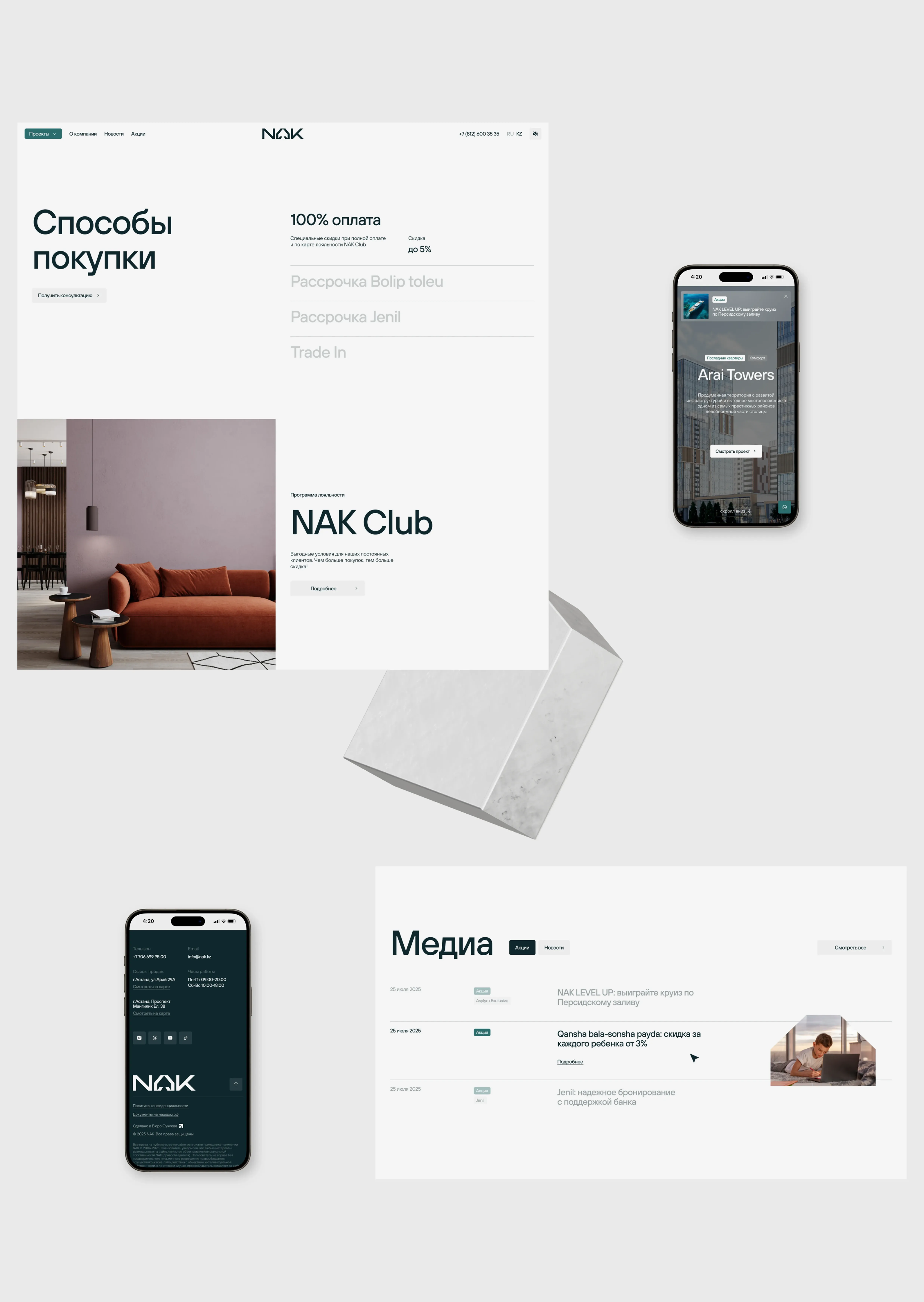 NAK — компания с сильной и четкой позицией, у которой любовь к культуре и социальная ответственность — основа стратегии. Нужно было отразить эти подходы на сайте.