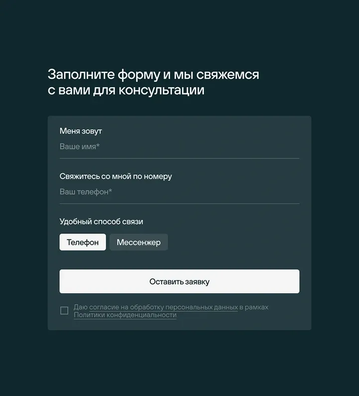 К стандартной форме звонка добавили добавили возможность связаться с менеджером через мессенджер.