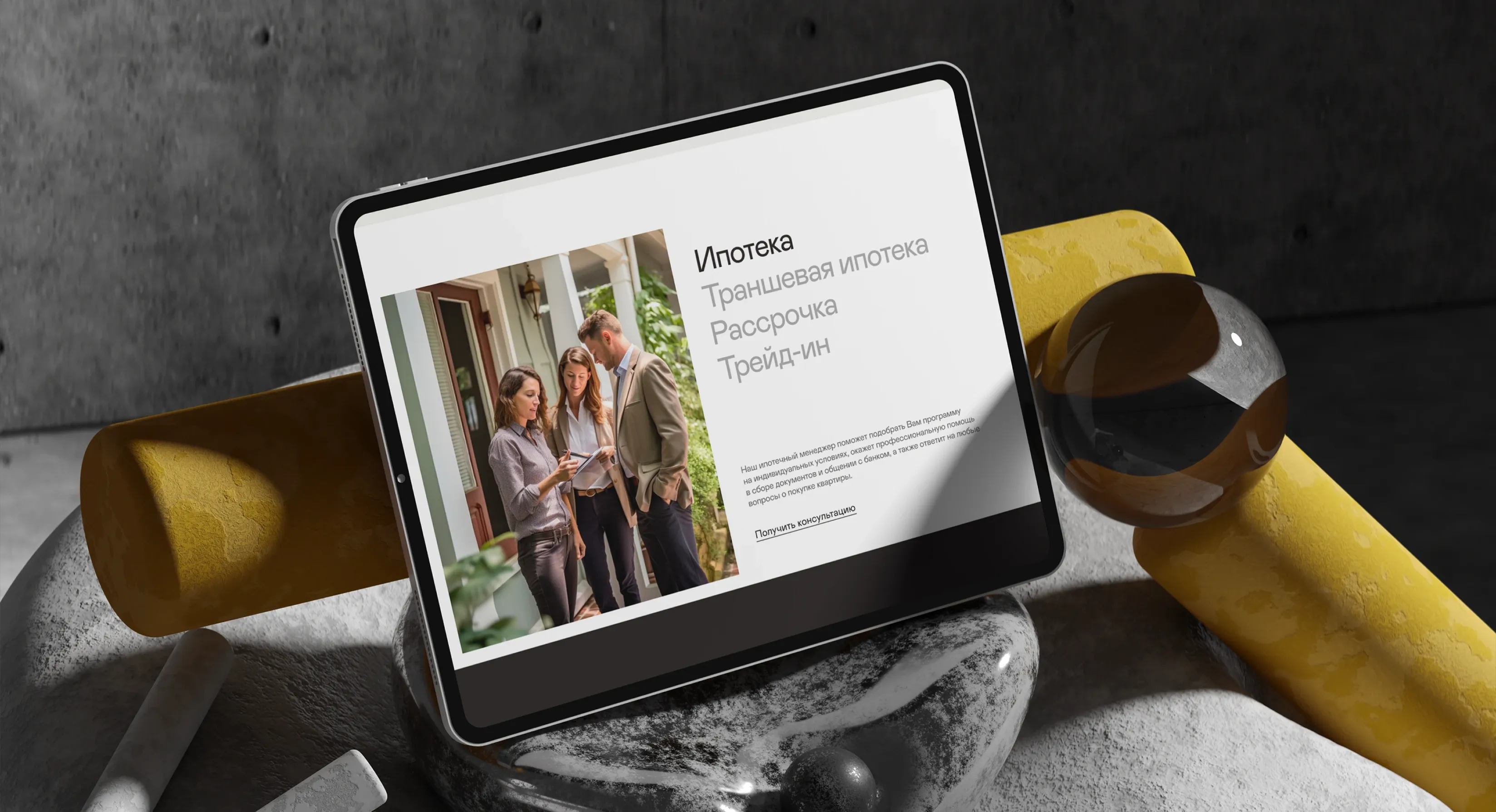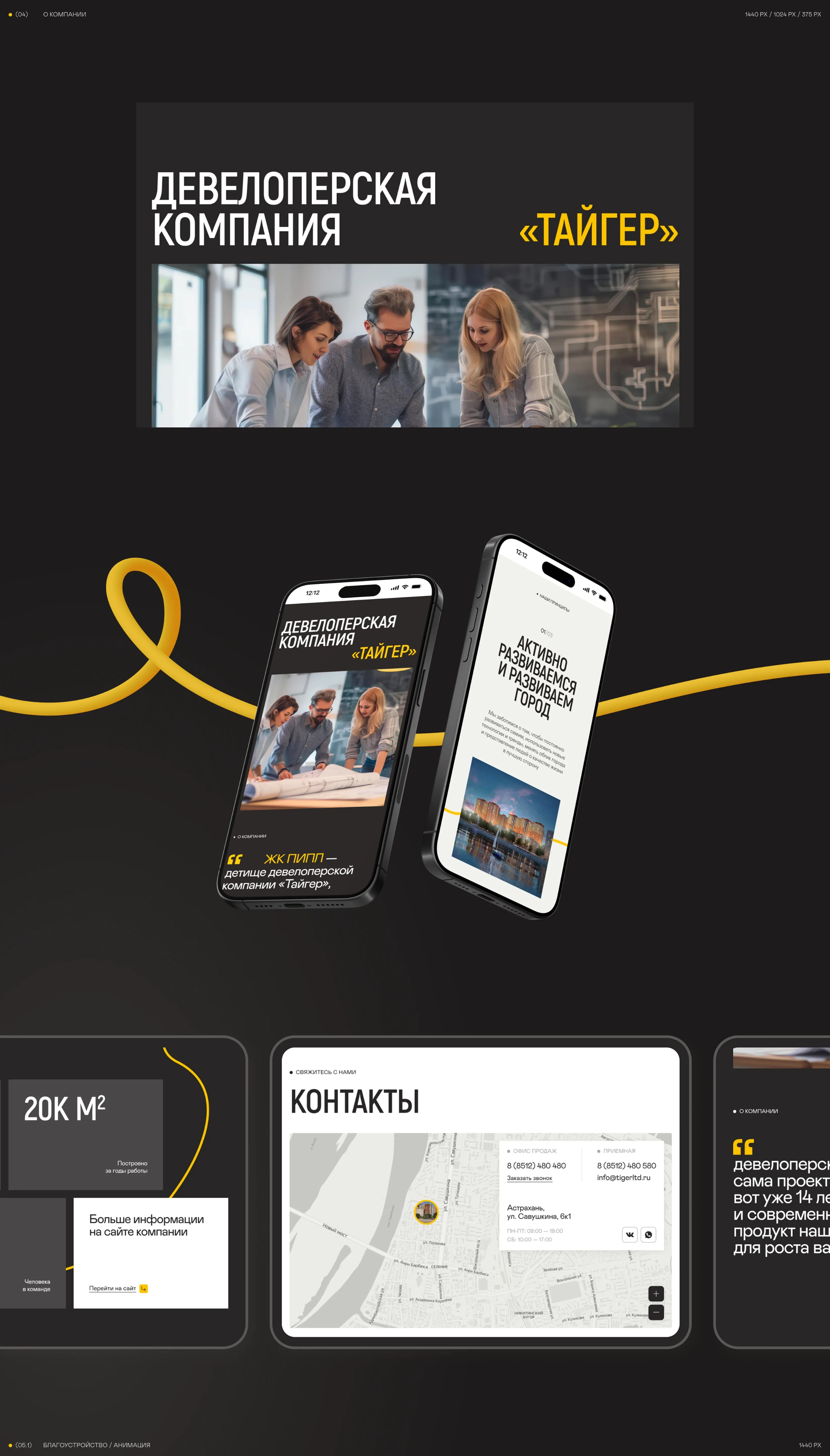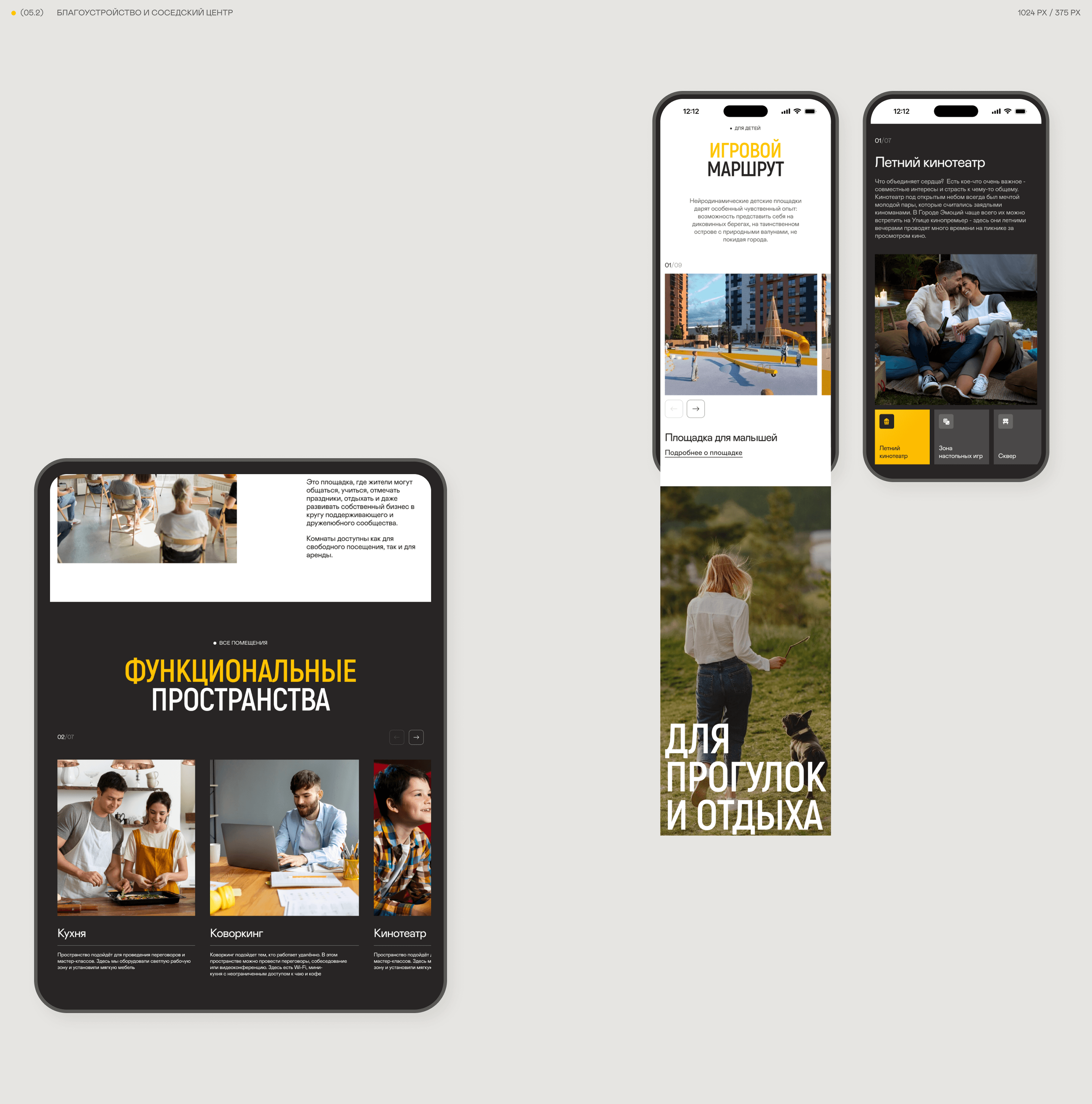 Использовали теплые серые цвета в сочетании с черным и белым. А акцентом стал дружелюбный желтый. Мягкую, округлую типографику сочетали с более строгим, вытянутым шрифтом заголовков.