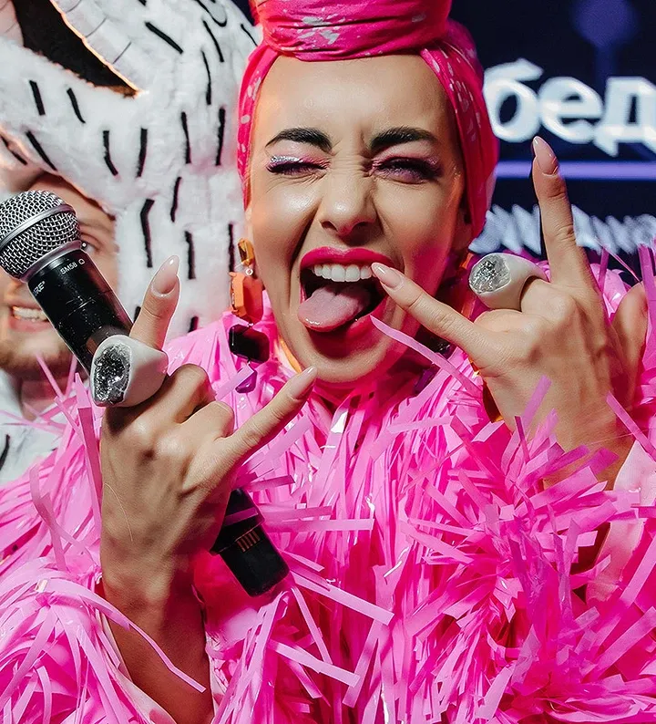 Они хорошо будут работать и в офлайн, и в диджитал, к тому же идеально подходят семантически. Фиолетовый — цвет фантазии, креатива, творчества, а розовый связан с эмпатией и молодостью.